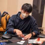 Though he played strongly throughout the tournament and entered heads-up play with the chip lead, Joseph Hallock is in trouble in his heads up battle against Kento Watanabe. He had just stacked up a little after three-betting Watanabe off of an O8 flop. But then he took several O8 hands to the river where he was forced to fold, probably because there was no low possible. Watanabe now outstacks him by nearly 10-1 and the end might be in sight.
