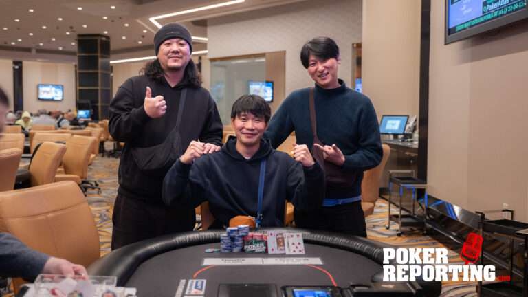 The flop was 4♠ 2♣ K♣ giving Hallock top pair with his K♦, but also gave Watanabe a low draw that would give a split if it hit. The turn came with a 7♣ that paired Watanabe’s seven and gave him some outs for high to go with his low draw. The river delivered the decisive Q♠, giving Watanabe two pair queens and sevens and the tournament victory.